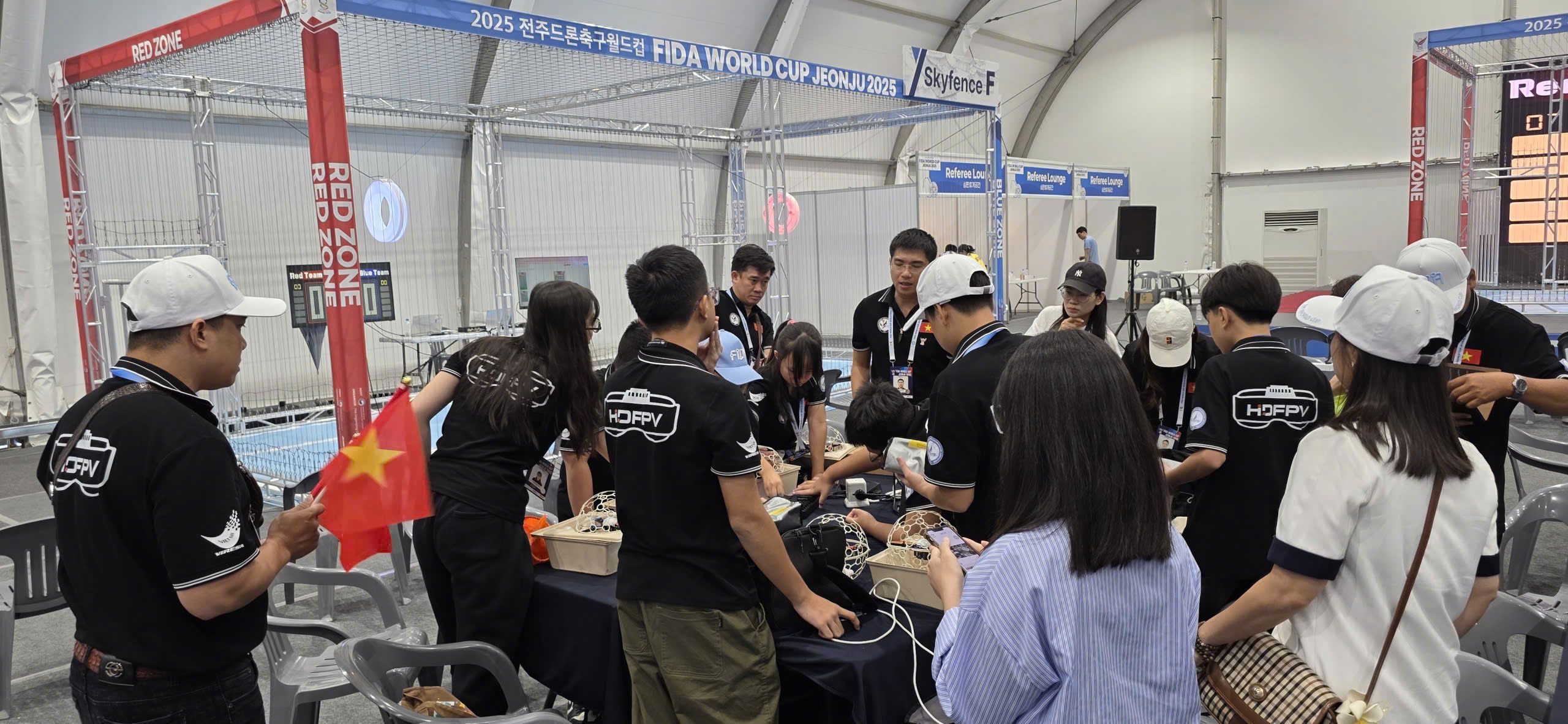 Ngày 27/9/2025 tại thành phố Jeonju, Hàn Quốc, đội tuyển DroneSoccer Việt Nam – HDFPV đã chính thức khép lại hành trình của mình tại giải đấu FIDA World Cup 2025 sau trận đấu vòng 1/16 bảng quốc tế đầy kịch tính với đội tuyển Hong Kong, kết thúc với tỷ số 16:19
